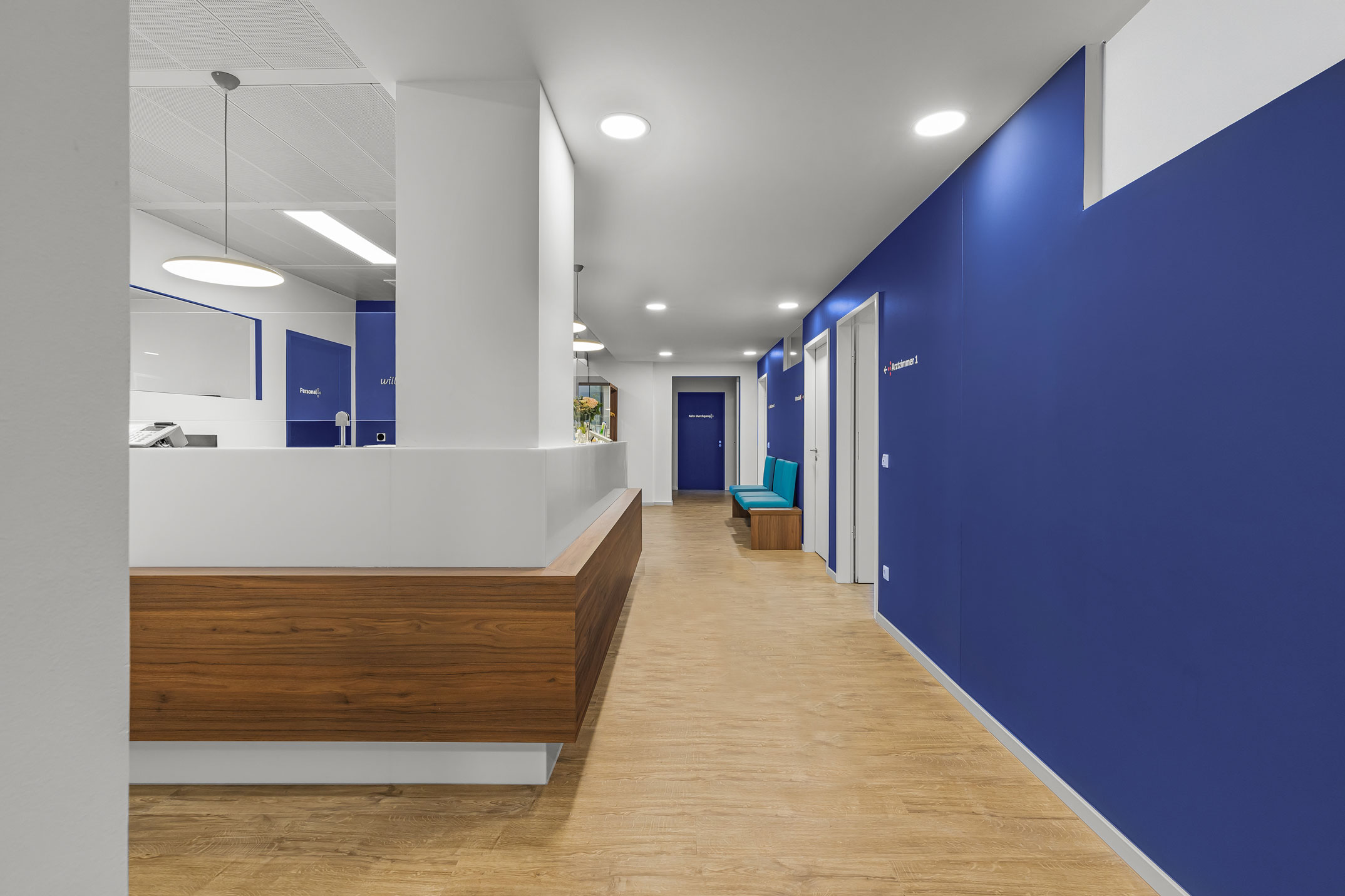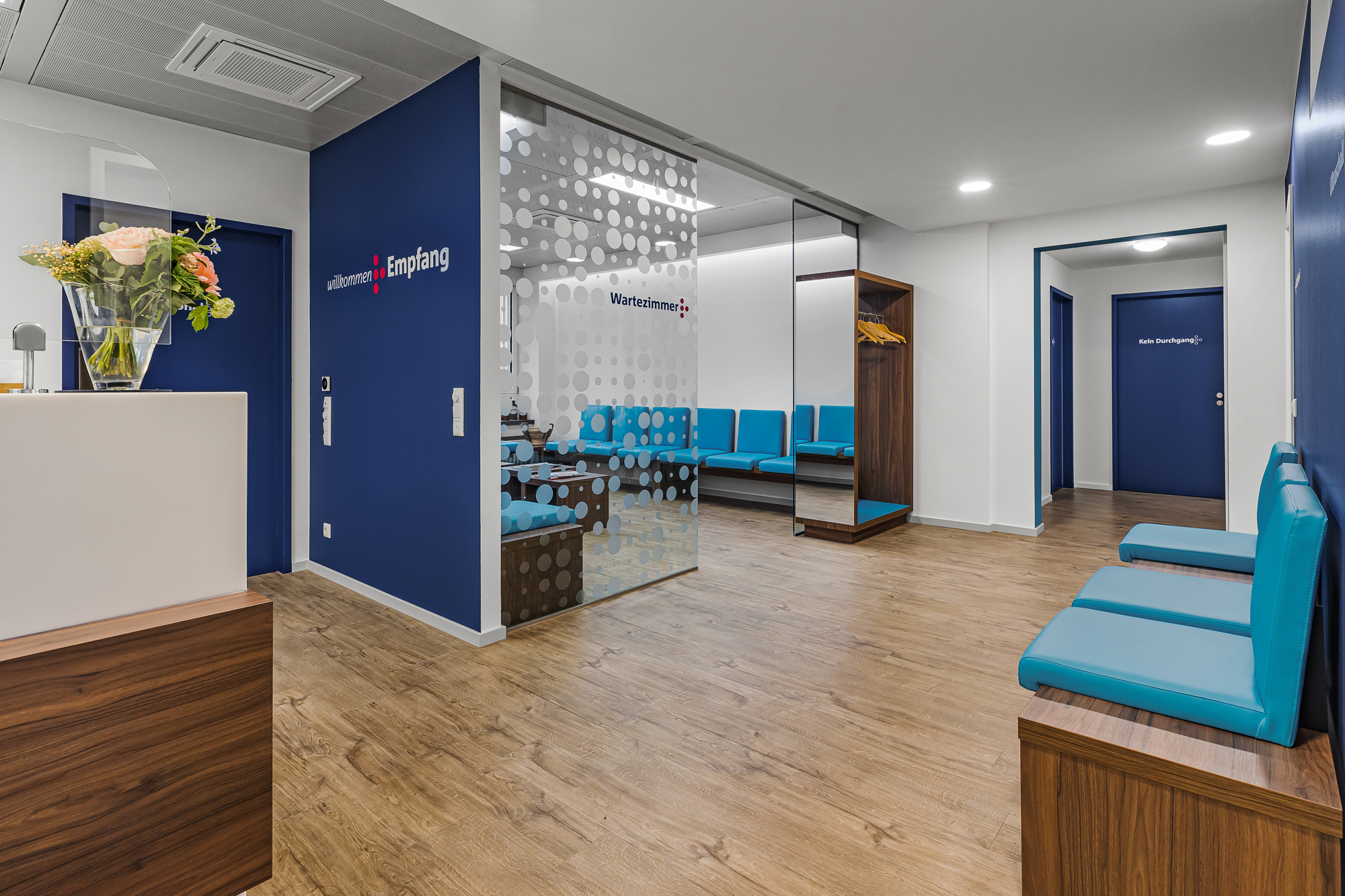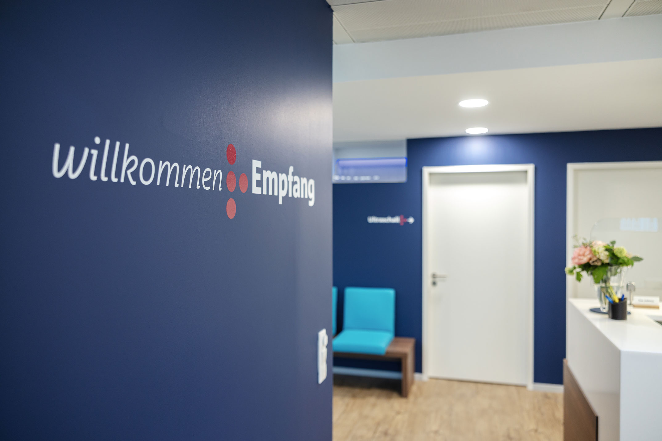 Für die neuen Praxisräume sollte ein fröhliches, positives Ambiente zum Wohlfühlen, sowie ein Erscheinungsbild geschaffen werden. Der Wunsch der Ärztinnen war, die hausärztliche Versorgung in den Vordergrund zu stellen.